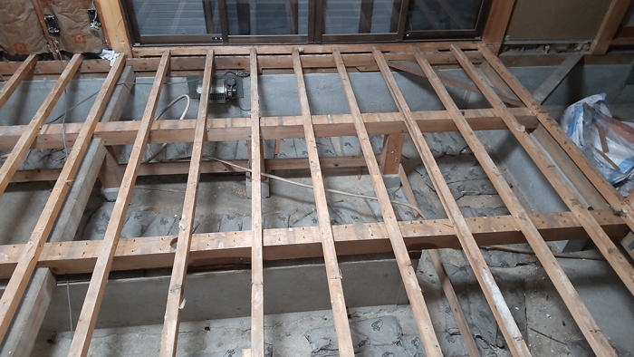 一時的な状態だと思いますが、このあと土台周りを綺麗に整えて、近々、新しい床材の組み立てが始まって新しい床ができる予定です。