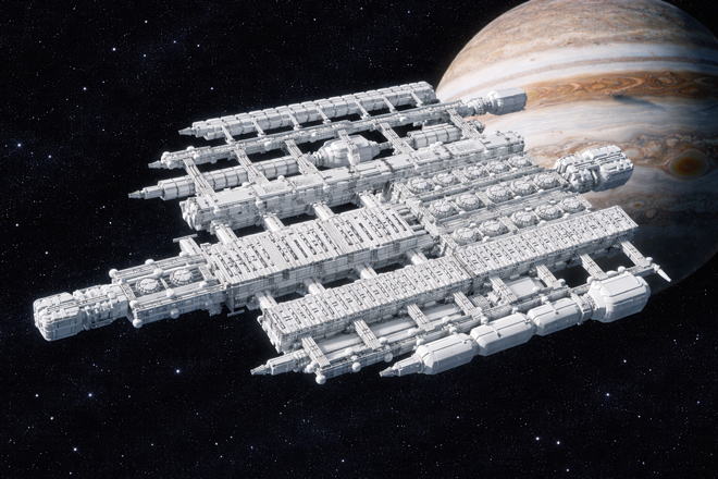 ●作業プラットフォームA、B、C (旅客/貨物兼用ブラットフォーム) <構成> ・中核ブロック ・増設核融合炉モジュール ・物流用ブロック×2 ・旅客用ブロック×2 ・増設桟橋×2 <最大取り扱い船舶> ・貨物船2隻 ・タンカー1隻 ・旅客船2隻 同時接岸可能 <詳細スペック> 作業プラットフォームA、B、C ※別窓で開きます |