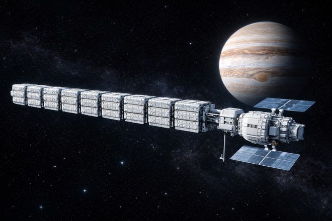 貨物輸送に要する時間は、地球/木星間であれば2か月から4か月程度(地球/木星の相対位置により変動)になります。