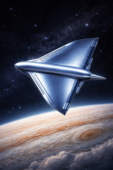 「エンデヴァー」から降下した原子力ラムジェット機は、木星上層大気中を飛行して大気のサンプルを採取、
