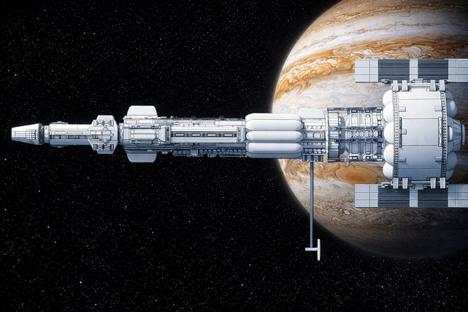 | <ミッション> ●2056年~2058年:木星/土星第一回探査 ・木星の調査、衛星への着陸探査機での調査 ・土星の調査、タイタンへの着陸調査 ●2059年~2061年:木星第二回探査、小惑星調査 ・木星での原子力ラムジェット機のテスト、大気サンプル採取 ・木星周回軌道へのデータ中継/灯台衛星設置 ・トロヤ小惑星への資源探査 |