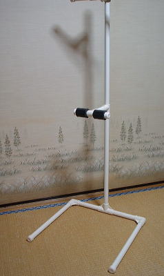 先週組み立てたスタンドにも、ちょっと直立補助用の器具をつけてみました。