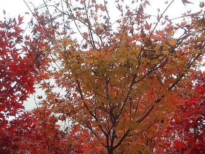 天気はあまりよくありませんでしたが、庭の紅葉を写真に収めたいと思いました。 夏の間は、枝がいっぱいに伸びて、非常に目障りでしたが、 この時期になって、綺麗に赤い色に染まって、なかなかいい眺めです。