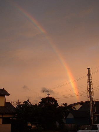 けっこう昼間は風がひどかったです。 雨はそれほどでもなかったですがね(^_^; 夕方はけっこうすごい夕焼けだったので、もしかしたら・・・・・・・と思って外に出たら、 みごとな虹がでていました。すかさず写真撮りました。 あしたはいい天気になるといいですね・・・・・・(^_^;