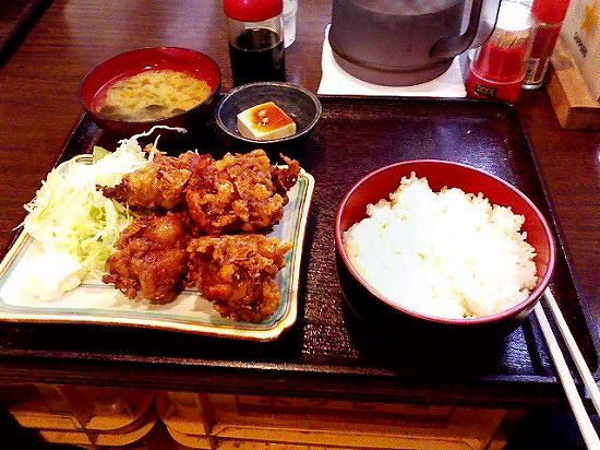 私はからあげ定食を注文しましたが、からあげが大きいこと。それに量が5個もあるとは!(^_^;