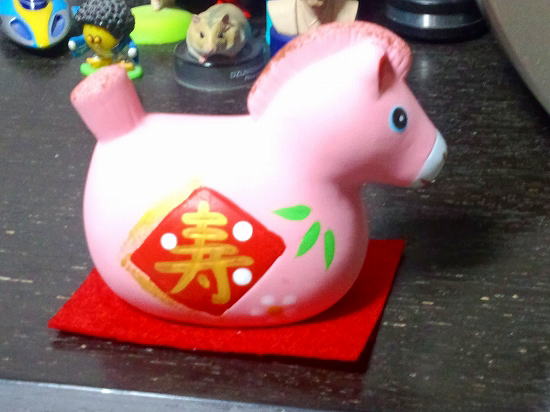そういえば元旦の初詣に行ったときに、馬の置物を頂いてきました。