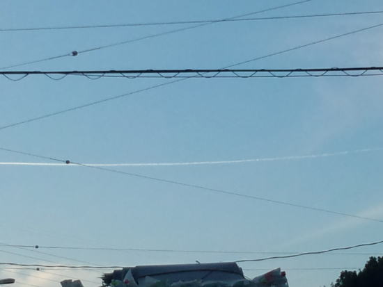 今日は写真を撮っていないので、以前にピーカンな空の写真を撮ったのを貼ってみます。ついでにケムトレイルもありますが(^_^;