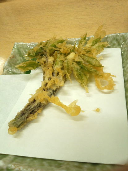 駅前の天ぷら屋に入って、定食を注文してみましたが、ふと目についた「こしあぶらの天ぷら」を注文してみました。