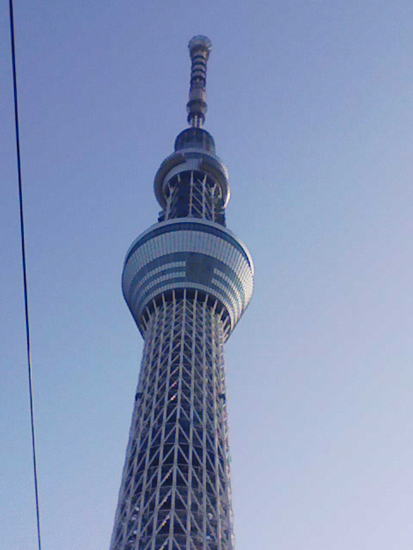 あたりはもう夕方の暗くなった時刻になっていて、まだ建設中のスカイツリーには電気がきらめいていました。