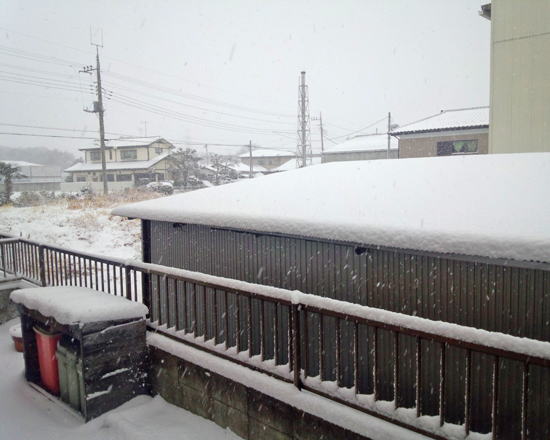 ちょうどお昼の頃には雪もチラチラと舞っていました。これでますます外出したくなくなります。