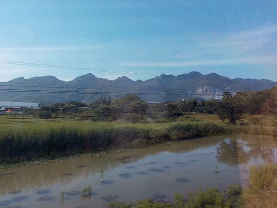 再びスピードを上げて走る列車。やがて風景は田園風景から山の風景に変わってきました。