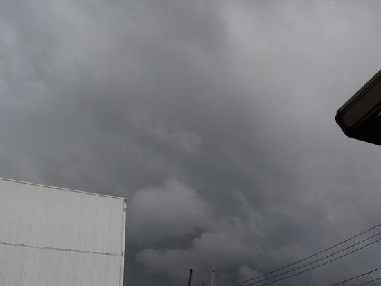 空を見たら、なぜか東から南にかけてどす黒い雲が大量にわきあがっているのが見えました。こりゃきますね(^_^;
