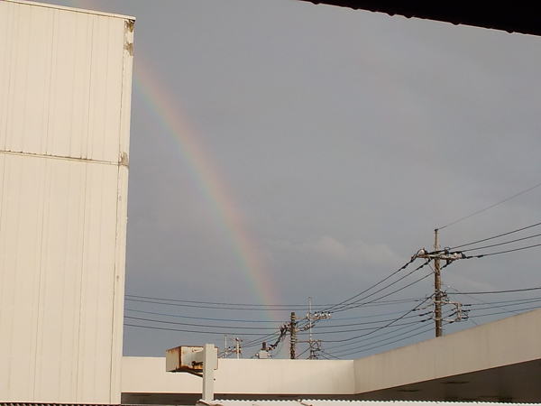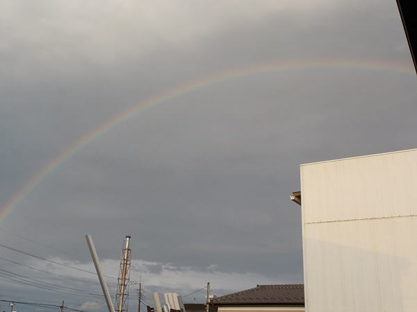 夕方になる頃にはようやく止みましたが、外を何気なく見てみたら、大きくてはっきりと見える虹がかかっていました。