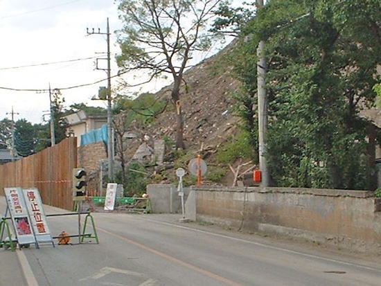 今日、すぐそばを通ってみると、草木は撤去されていて、建設機材が土砂の撤去を始めているようでした。