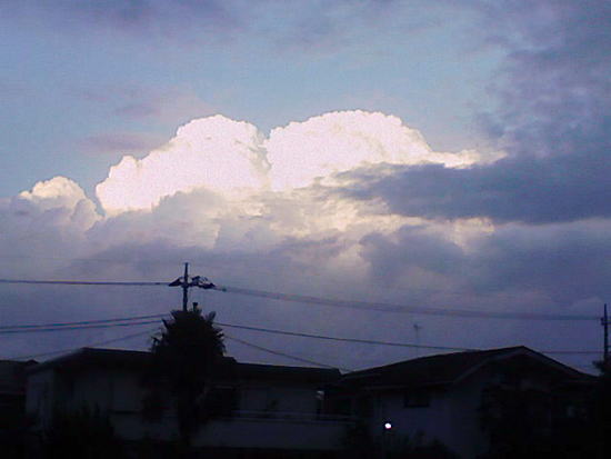 現場から近くの駅に向かっている途中、ふと空を見上げたら、遠くの空にとんでもなく大きな雲が湧いていました。