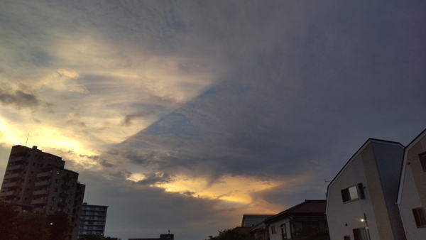 そういえば、つい先日夕方の空を見上げたら、なかなか珍しい空模様になっていたので写真を撮りました。