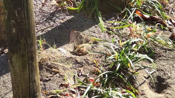 公園の植え込みの中では、スズメが砂浴びをしていました。