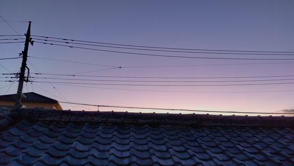 日が落ちると一気に寒くなります。ついさきほどの外の様子を撮ってみました。いかにも冬の夕暮れですね(^_^;