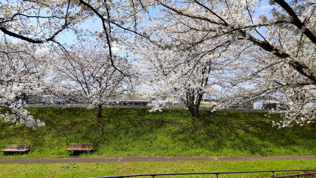 午前中に掃除と洗濯を終わらせて、午後から花見に行きました。ちょっと風がありますが寒くはありません。