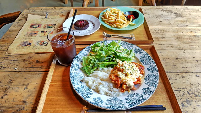 幹線道路の交差点の角地にある店なのですが、地面が一段低い場所にあり、ちょうど隠れ家的な雰囲気。