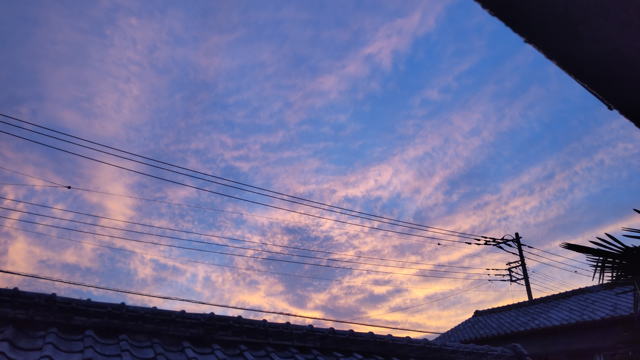 夕焼けといえば聞こえはいいのですが、なんだかグロテスクな空でした。まるで私のモヤモヤした頭の中のようです。