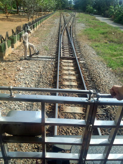 機関車はそのあと、先頭から切り離されて、待避線を走って最後尾まで行きます。