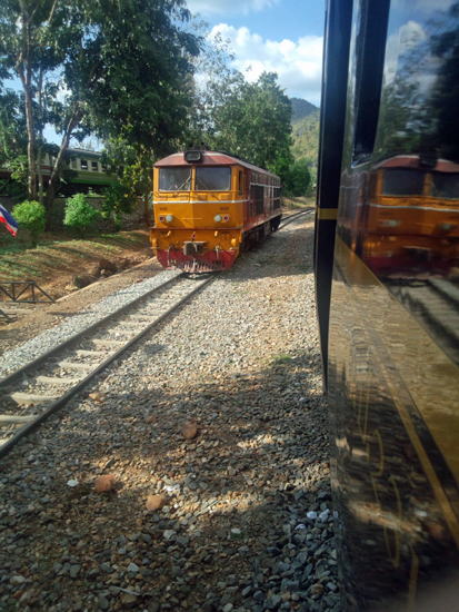 私たちの乗っている車両は最後尾だったのですが、機関車が連結して先頭車両になりました。