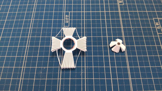 ペラペラの紙を厚みのある立体に組み立てるのですが、のりしろがないので接着剤だけで立体に組み立てます。
