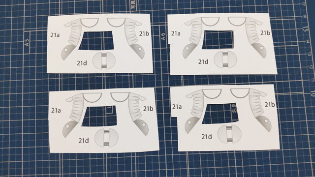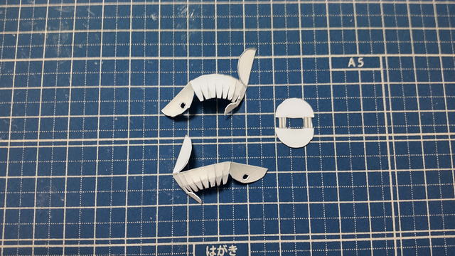 切り取ったのが下の画像になります。これから立体に組み上げるのでピンセットでつまんで曲げていきます。