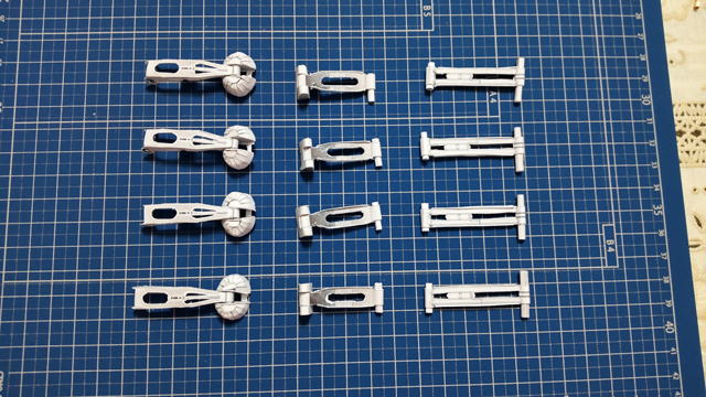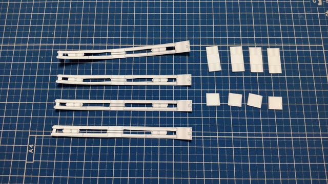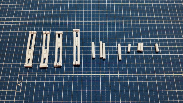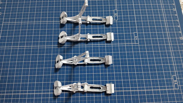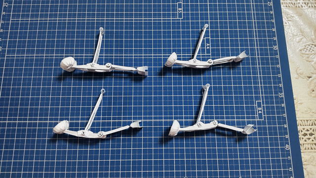 着陸脚のパーツが3つ揃いました。これから関節部分を接着していきます。