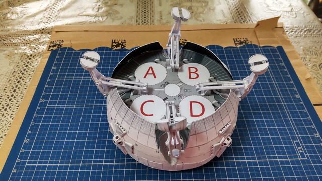 中央部にA、B、C、Dと表示されている部分があり、この部分に推進システムが取り付けられます。