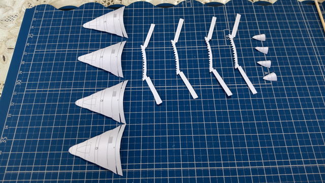 平面の展開図の状態でも数センチの大きさなので、作るのがなかなか疲れます。ピンセットでちまちまと折って、接着して。。。。
