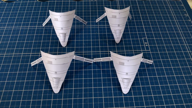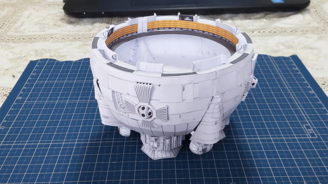 ペーパークラフトは胴体下半分がいよいよ終わりに近づきました。