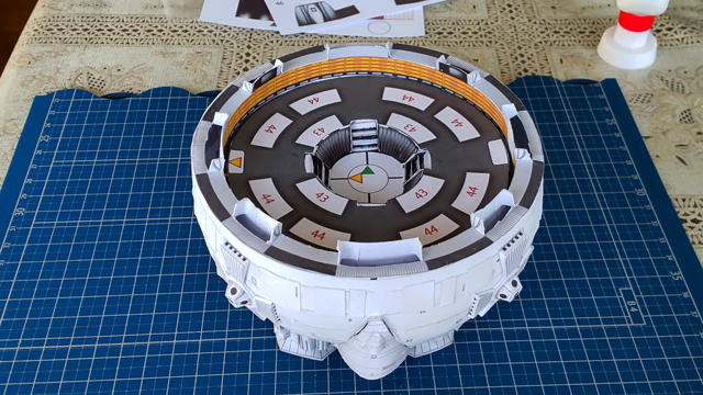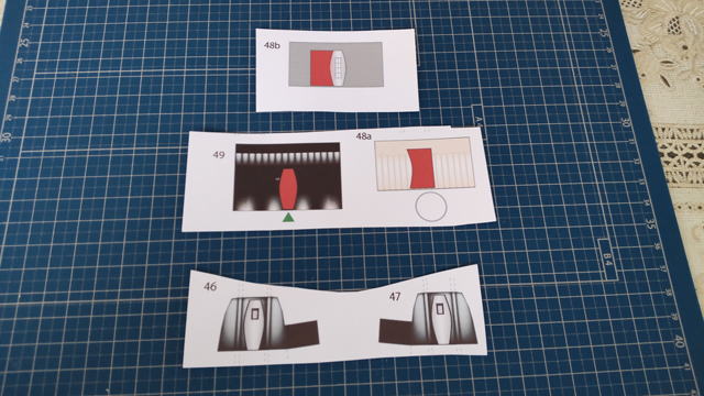 涼しい部屋の中で粛々とペーパークラフト作成を進めています。今回から乗客が搭乗するキャビンを作成します。
