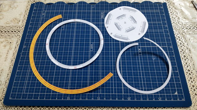 つい先日親戚と会って頂いたお菓子の箱からボール紙を調達しました。リング状に切り出してマジックで黒く塗ってみました。