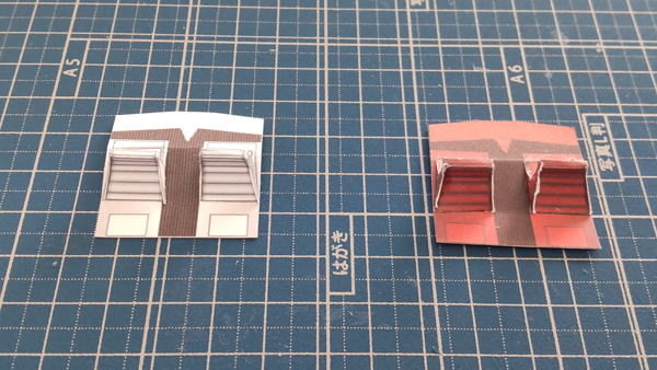 同じ形の部品が2枚ありますが、右の画像は映画中のシーンと同じく赤色灯で照らされているコクピットになります。