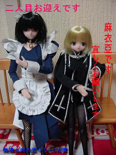( 2004.11.20 ) 麻衣亜さん、こちらこそよろしくお願いします。 なんか仲良し姉妹ですね(^_^; 姉妹揃ってアミアミストッキングですね。 なかなかいい眺めです。うむむむ・・・・(^_^; ふふっ・・・・・。 何ですか、またその不気味な含み笑いは(^_^; ナニかイケナイこと考えていないですか? う〜〜〜〜ん、アミアミ太股にすりすり・・・・。 なんて、ナニを言わせるんですか(^_^; まあ、間違ってはいないと思うね(^_^; 夜中にヘンなコトしないでくださいね(^_^; 大きなお世話です(^_^; |