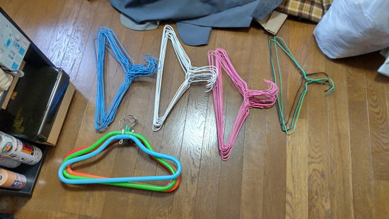 針金ハンガーも大量に発生しました。なにかに使えるのではと保管しても結局使わないのでこれも捨てる事にします。