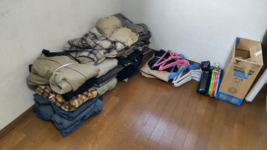自分のものと、理沙と直子さんの服以外はすべて不要と決めて、一気にハンガーからはずして床の上に積み上げました。