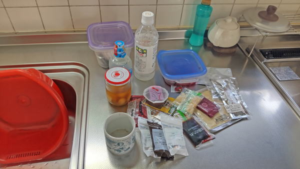 ナニげに捨てずに溜まってしまう、ちょっとした調味料とか、食べずに残ってしまった梅干しとかがありました。