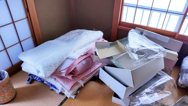 押入れの中には布団などがたくさん入っていて、他にも開けていない箱がたくさんありました。