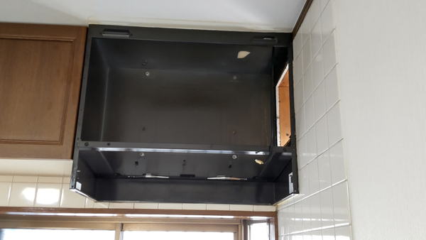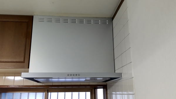レンジフードの取りつけが完了した状態です。