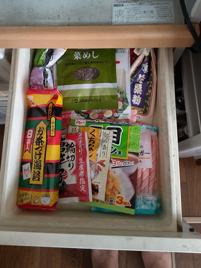 調味料や、乾燥麺なんかが入っている引き出しです。