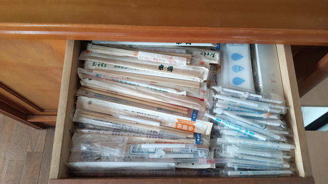 コンビニ弁当についている割り箸とか、紙パックジュースについているストローを、使わないから引き出しの中に取っておいたら、