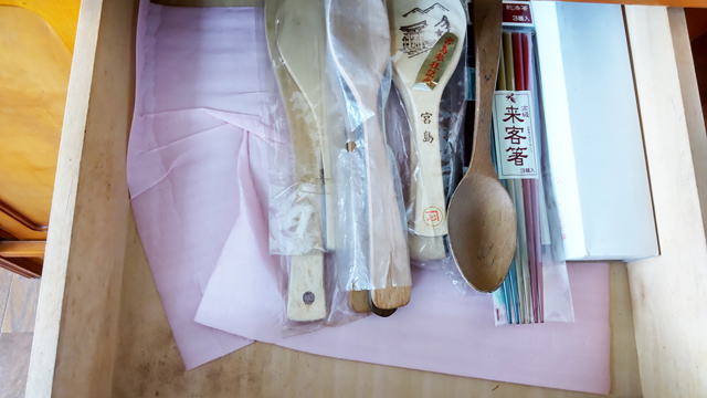 捨てたら一気に引き出しの中がスッキリとしました。木製のスプーンについては、残すか捨てるか今後考える事にします。