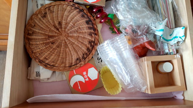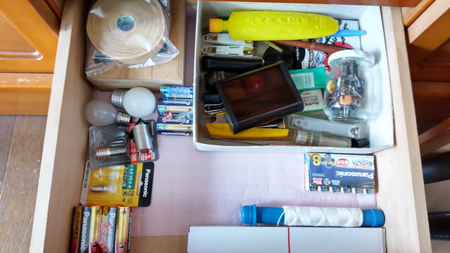 梅雨前の少々暑い日ですが、さっさと片付ける事にします。今日は食器棚の引き出しの中の断捨離です。