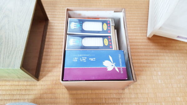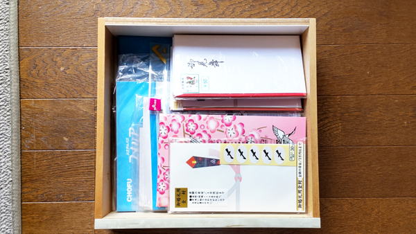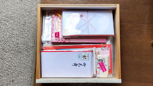 親族の葬儀の際などに、なにかと溜まってしまったものだろうと思います。必要最小限の量だけ残してあとは捨てました。