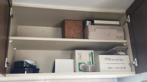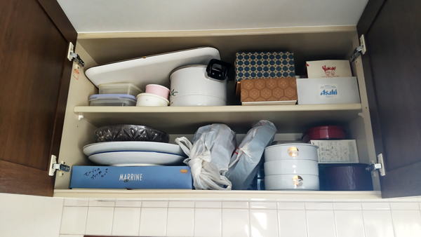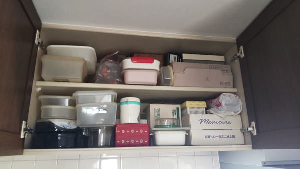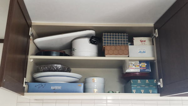今日は台所の上にある収納棚の中を断捨離しました。