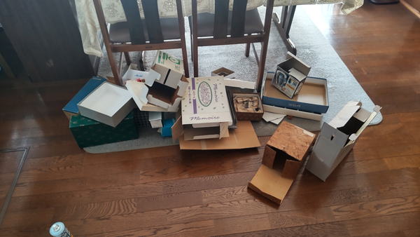 箱に入っているものはすべて箱から出したので、片付けるべきものの全体像がはっきりとしました。