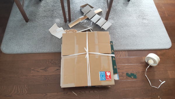 箱をたたんでまとめたら、こんなにコンパクトになりました。しかし、過剰包装ってのはムダだなぁと改めて思いました。